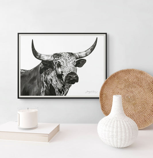Nguni Bull Head (Portrait) Poster Print