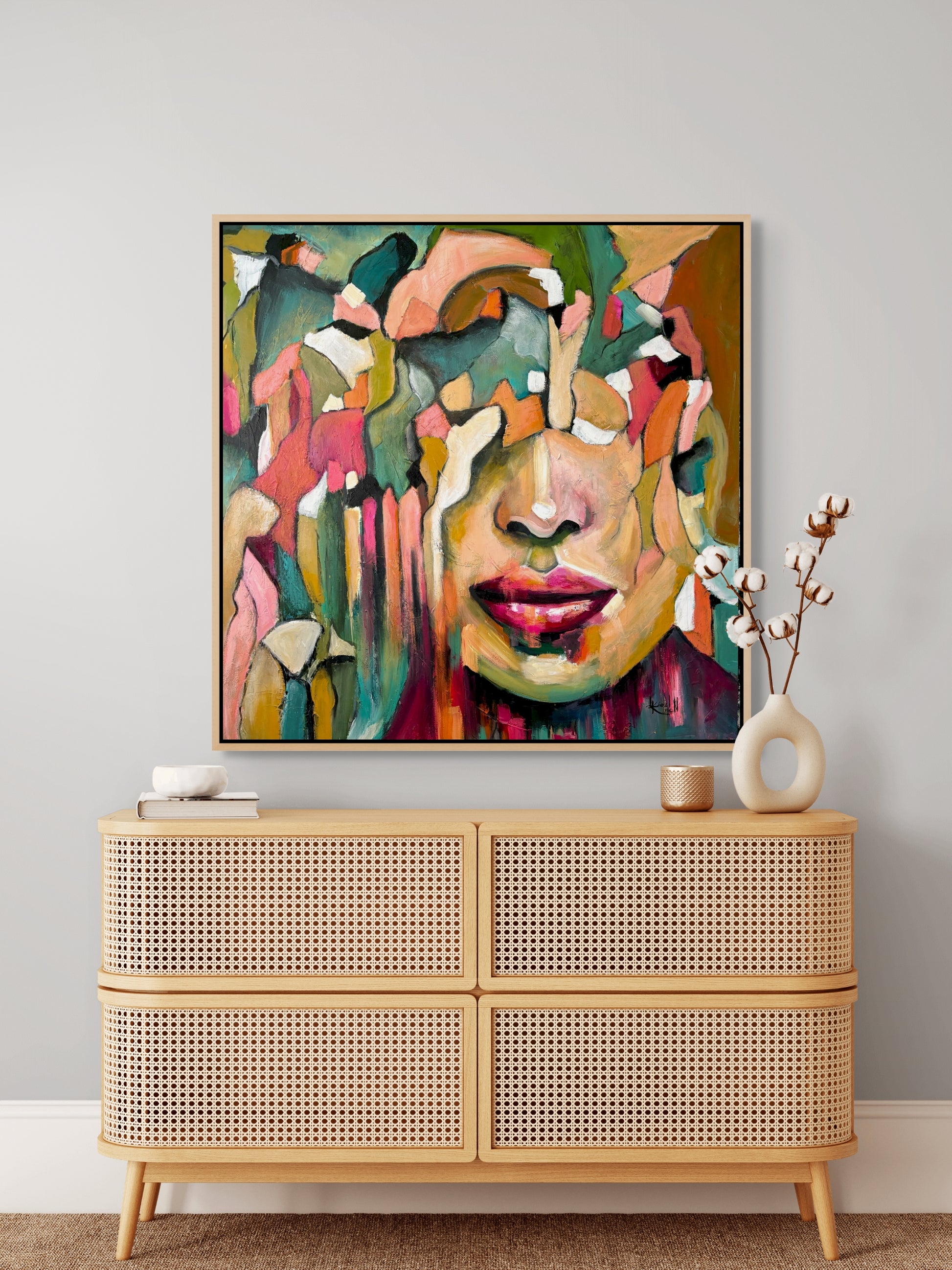 Beauty Fragmented canvas print by artist, Liezl Knoll comes stretched onto a 28mm wooden frame. We use pigment inks, which are archival quality on all canvas prints up to 100cm wide. We use Dye inks on all canvas prints wider than 100cm.
