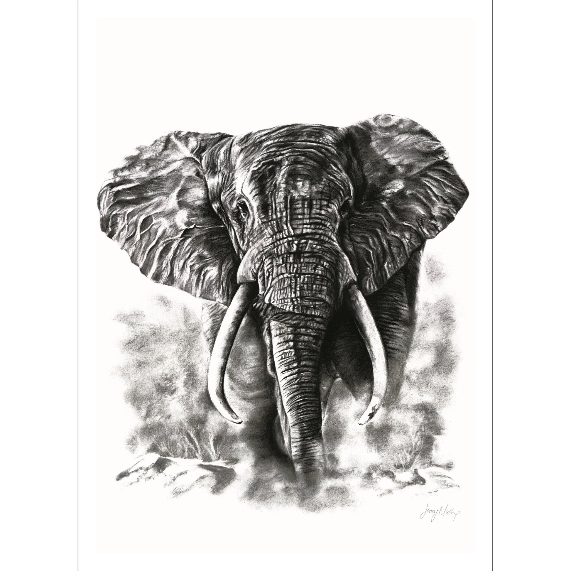 Jenny Mallon's Ellie Dust Charcoal Sketch is part of a larger collection of Africa's majestic animals.