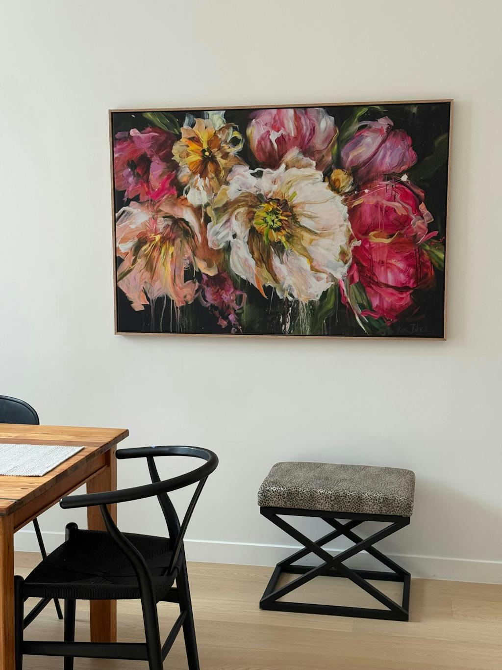 Kim Black is renowned for her love of florals. This canvas print is certainly a statement piece of luxurious peonies. Select the size to best suit your space.
