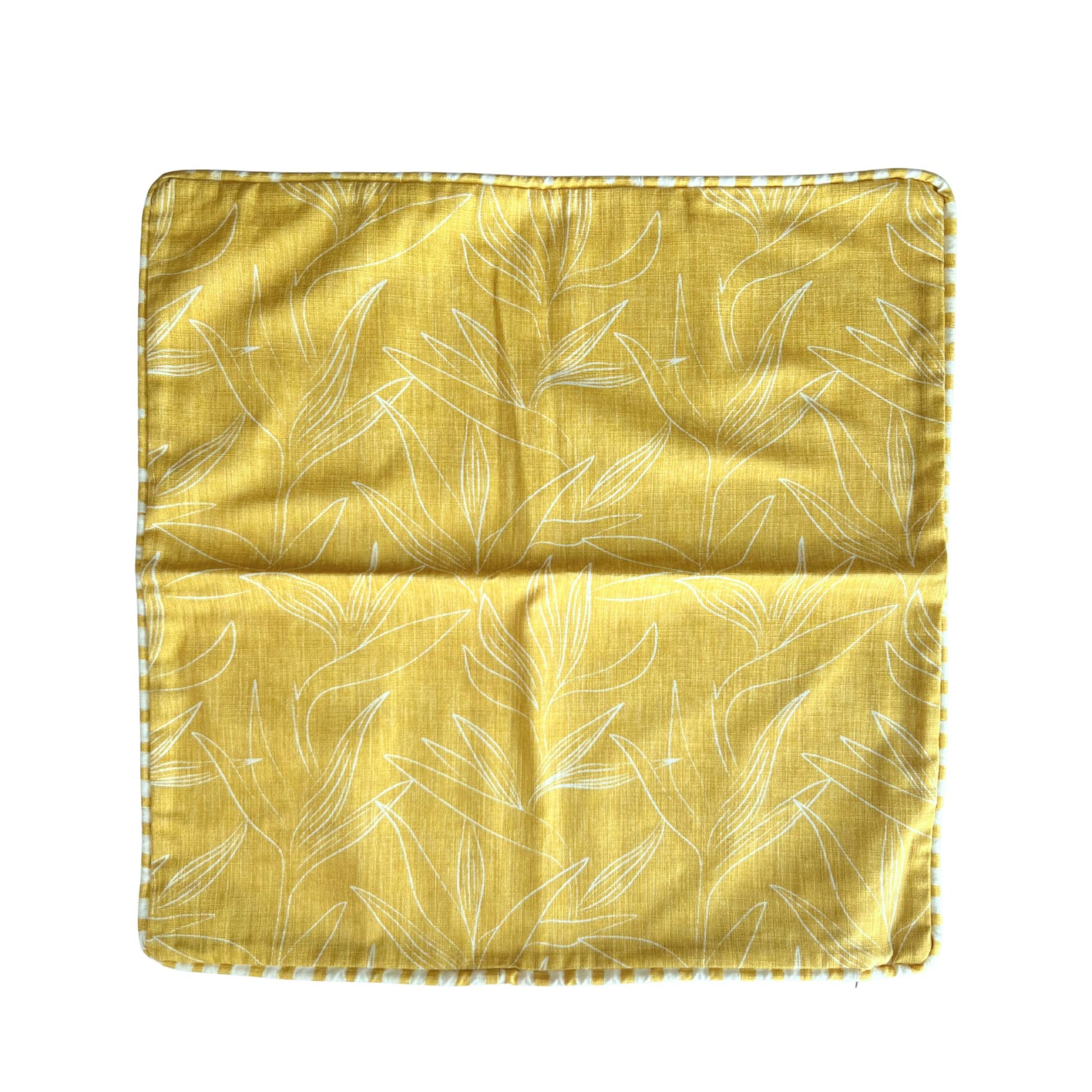 100% cotton with a Turmeric print. We use YKK zip for ease in removing the cover for washing. Handmade in Cape Town.