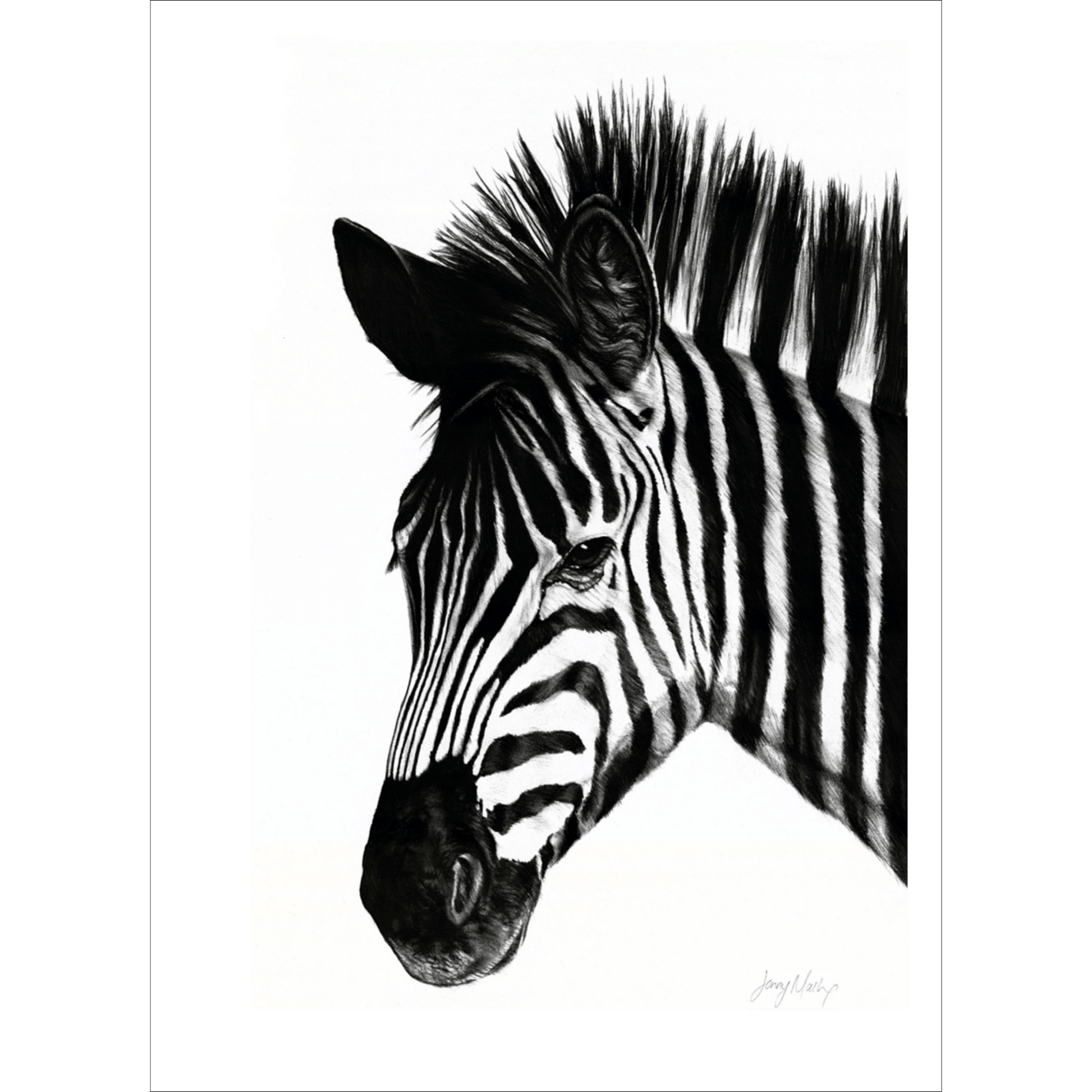 Jenny Mallon's Zebra Charcoal Sketch is part of a larger collection of Africa's majestic animals.